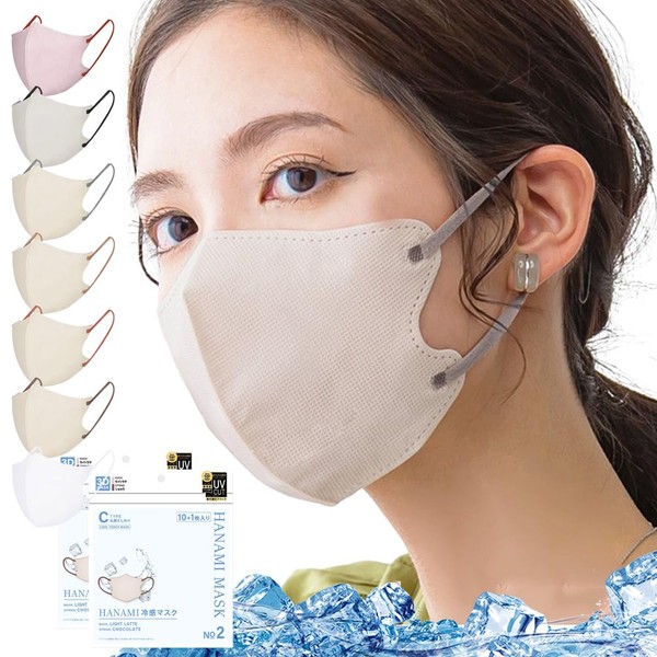 [millarouge] 冷感マスク 使い捨てマスク 22枚 接触冷感 3D 立体 不織布 血色 カラー 立体 使い捨て 小顔 バイカラー チーク 薄型 耳が痛くならない hc11g-1