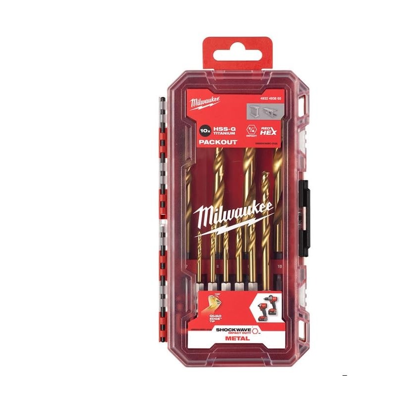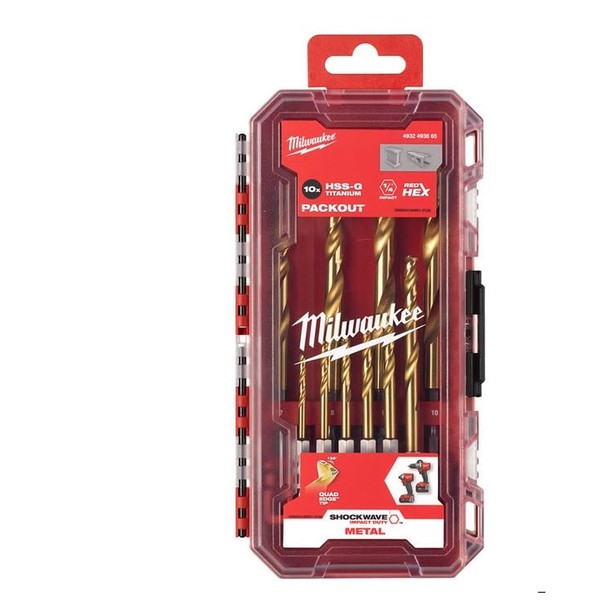 - Milwaukee 10 Piece SHOCKWAVE Red Hex HSS Titanium Metal Drill Bit Set