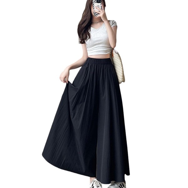 [Minax] ワイドパンツ レディース ガウチョパンツ ロング キュロット スカーチョ フレアパンツ 無地 夏 涼しい ゆったり 大きいサイズ (ブラック,L)