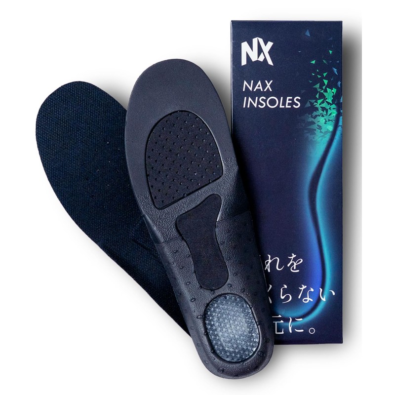- 【衝撃分散で軽やか歩行】 NaxインソールはクッションとEVAが着地衝撃を素早く分散します。かかとからつま先までやわらかく支え、インソールの物理的効果により膝腰への負担感を軽減し長時間歩いても疲れにくくします。。薄型なのでスニーカーや革靴、パンプスにも簡単にご利用いただけます。