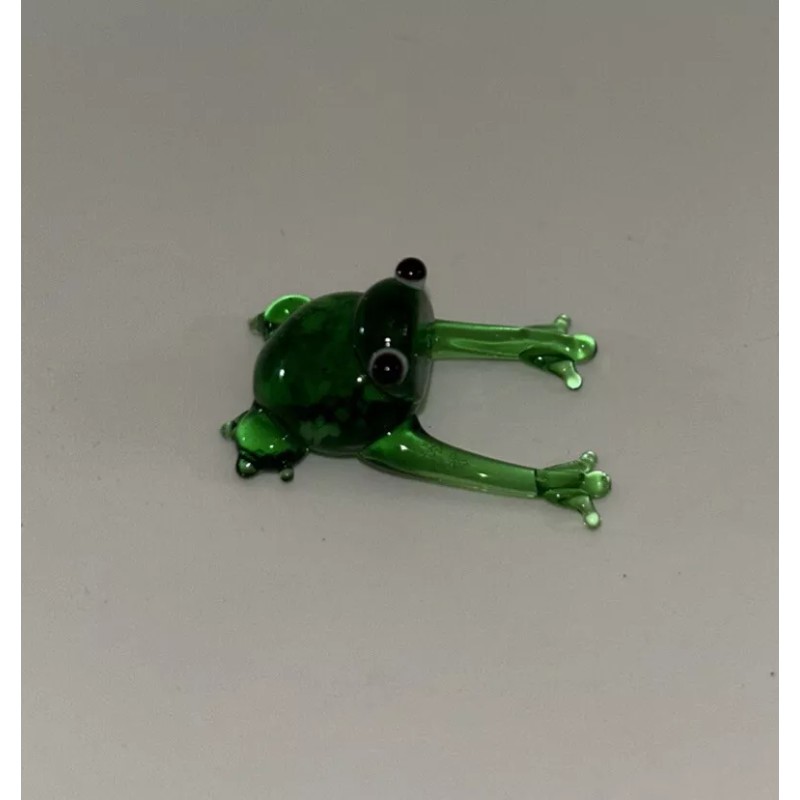 Miniature Tiny Lampwork Flame Hand Blown Glass Green Frog Toad New