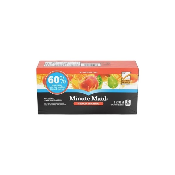 - Sweeten every moment with this delicious fruity treat. Packed into individually portioned juice boxes you can enjoy Minute Maid PEACH MANGO Juice right where you are and anytime you crave for it.