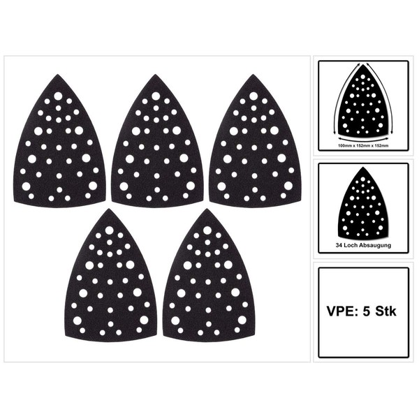 - Box contents: Pack of 5 pad savers, 100 x 152 x 152 mm, for Velcro sanding shoe or sanding disc of the Delta sander / triangular sander.
