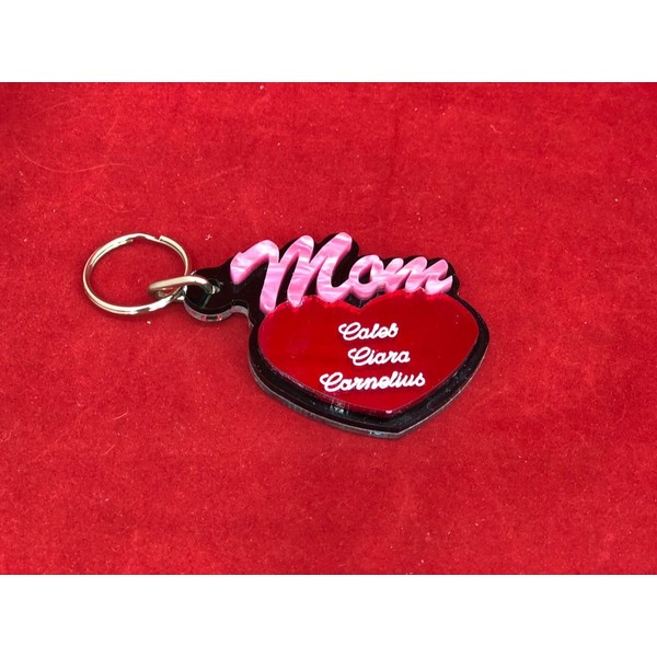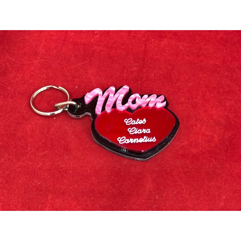 MIRROR MANIA Mom with heart Key Chain Custom Name Engraved Free keychain keyring Name