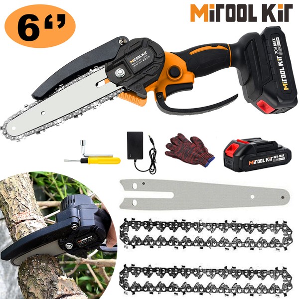 MITOOL KIT Cordless Chainsaw with 2.0ah Li-ion Battery 6-Inch Hand-held Mini Pruning Saw