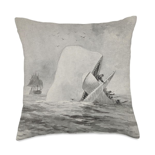 Moby Dick Whale Attacking a Whaling Ship (1892) Throw Pillow