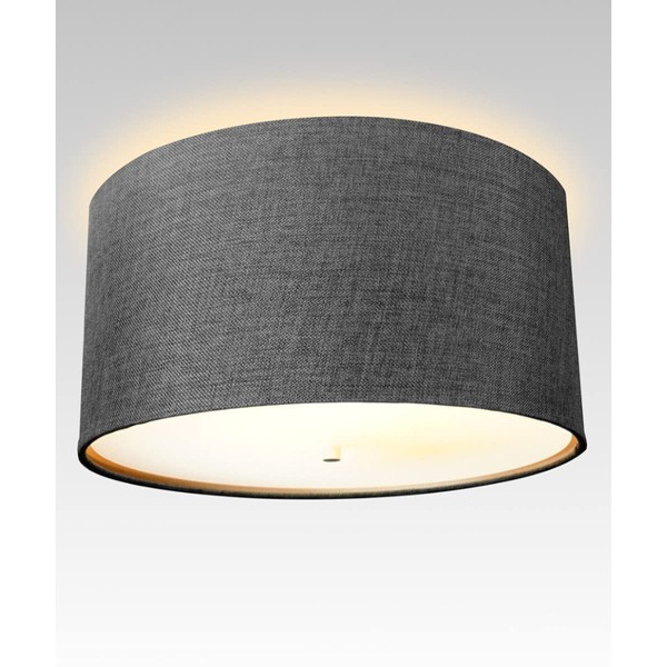 - QUALITY COMPONENTS - Thick Designer Granite Gray Linen Fabric Shallow Shade, Thick steel frame, Milky white diffuser to eliminate glare.