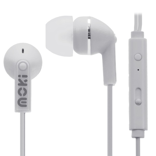 Moki Noise Isolation Earbuds with Microphone and Control, White