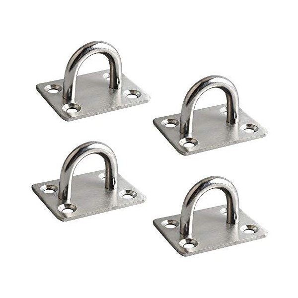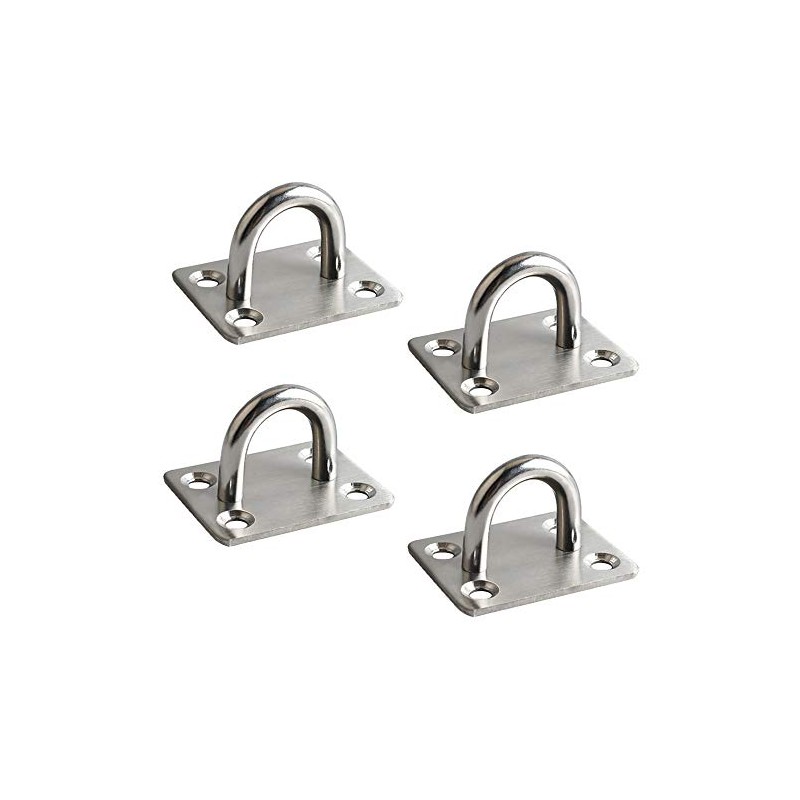 Mooche 4Pcs Pad Eye Plate Suspension Ceiling Hook Heavy Duty U Shape Staple Ring, Stainless Steel Brushed, MCDD008-4P