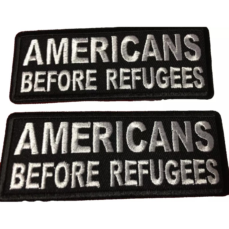Morale Patch AMERICANS BEFORE REFUGEES fun gift embroidered black/white #574