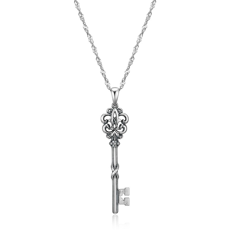 - Hypoallergenic Precious Metal Setting: Made for sensitive skin, this antique style key pendant necklace is Oxidized Rhodium Plated, crafted with nickel-free 925 sterling silver for a slightly tarnished, vintage look; the 18 in chain makes it ideal for layering