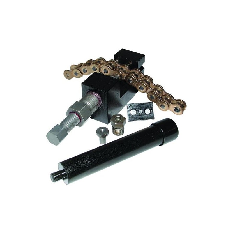 - Pushes the pin completely through the chain link and rivets the same size chain with the included rivet adapter