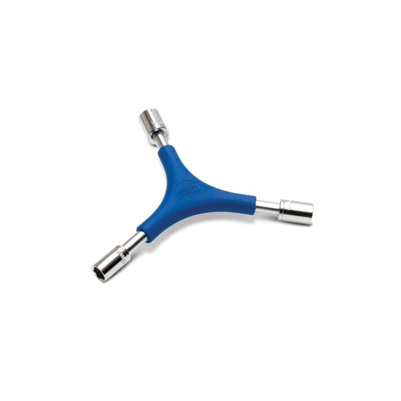 Innovative dual-use design combines 6 tools into one. 8 millimeter, 10 millimeter and 12 millimeter hex socket with 4 millimeter, 5 millimeter and 8 millimeter hex drive. Padded Y-shape for excellent grip and leverage. Compact design is ideal for trail tool packs. Chrome-vanadium tool steel.