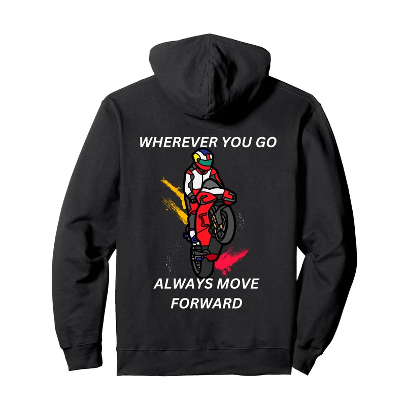 Motorcycle apparel, WHEREVER YOU GO ALWAYS MOVE FORWARD Pullover Hoodie