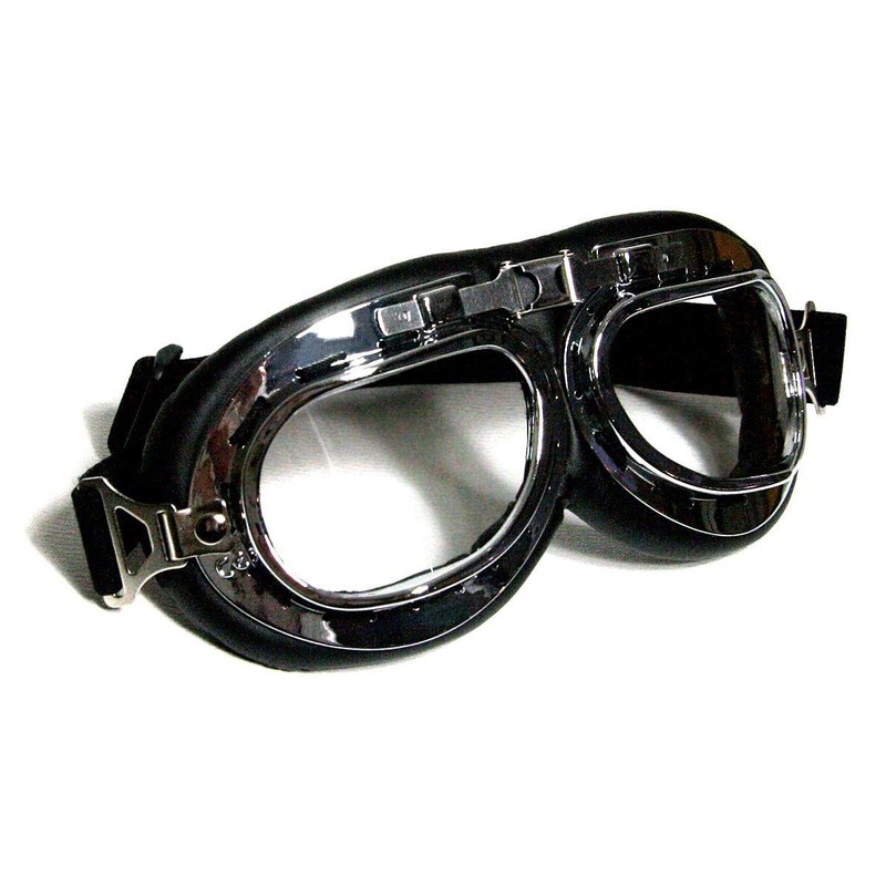 Motorradbrille schwarz klare Gläser verchromter Rahmen ECHT LEDER
