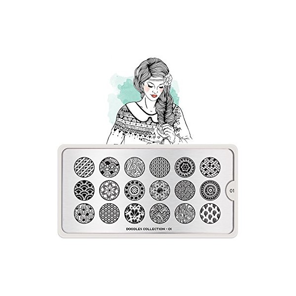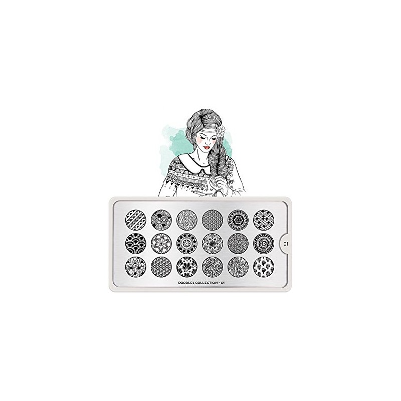 You will meet Daria – This Tagträumerische artist Kritzelt playful stamping nail art design art pieces which definitely will never boring. It does not have we and designed pattern away any Konvention, each is a small work of art. Are you ready for tons of inspirational Scribble blocks? The MoYou Stamping stencil – Doodle 01 is a stencil with 18 different designs, each with the following dimensions 1.2 x 1.5 cm. The offers until then, Ungeahnt creative stamping polish/design options in a sharp MoYou quality. The stainless steel plate with dimensions of 6.5 x 12.5 cm has a vinyl backing for increased ease of use. Each stamping plate is covered with a beautiful individually printed case cover. The designs are on the stamping stencil engraved and so practical can be used it for a lifetime.