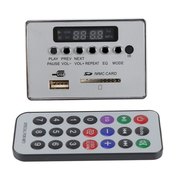 MP3 Decoder, DC12V Bluetooth MP3 Decoder Board Audio Module USB SD TF FM Radio Lossless WMA/WAV(12V Bluetooth Silver Edition)