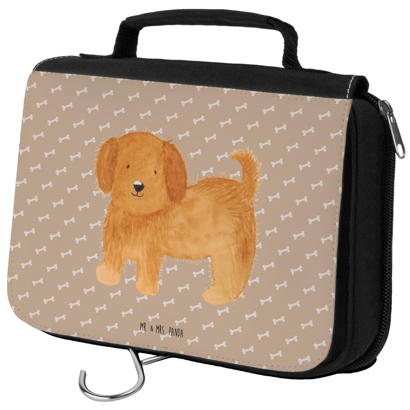 Mr. & Mrs. Panda Fluffy Dog Toiletry Bag, brown, Hand Drawn