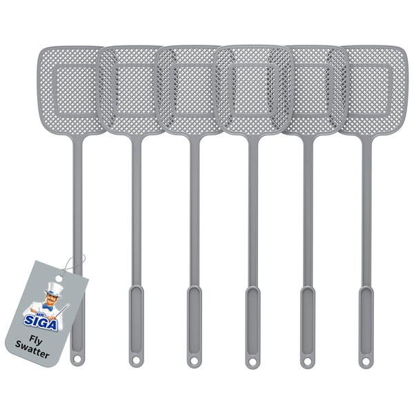 MR.SIGA Heavy Duty Long Handle Fly Swatter, Gray, 6 Pack