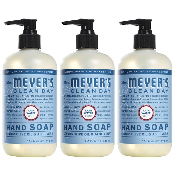 MRS. MEYER'S CLEAN DAY Hand Soap, Made with Essential Oils, Rain Water, 12.5 fl. oz - Pack of 3