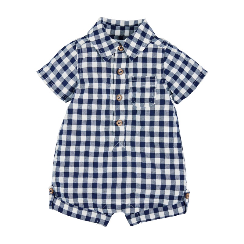 Mud Pie Boy Gingham Shortall; 3-6 Months
