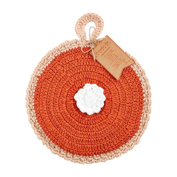 Mud Pie Crochet Pot Holder, 8" dia, Pumpkin Pie