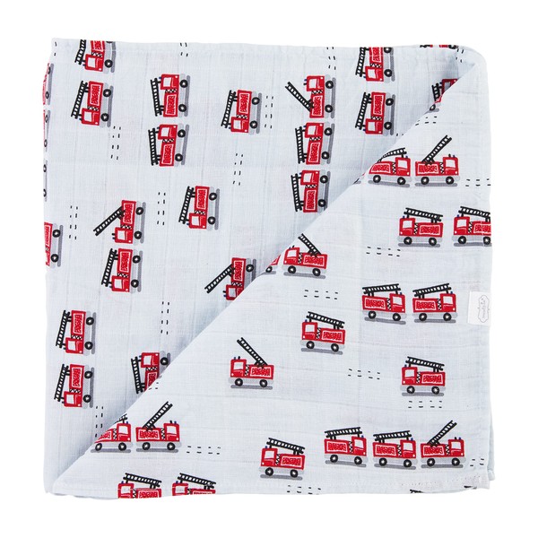 • Square muslin swaddle blanket features an all over firetruck print.