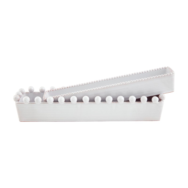 Mud Pie Nested Beaded Cracker Dish; Small 3" X 15" | Large 3 1/2" X 16",White