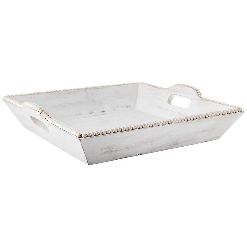Mud Pie White Washed Beaded Serving Tray, One Size