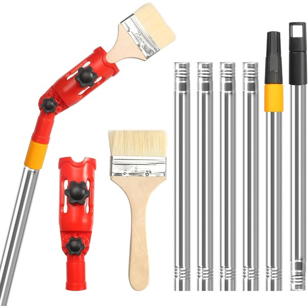 - 【Multi-Angle Paint Roller Extension Pole】Multi-Angle Brush Extension Pole Set includes a multi-angle stand, 1 Paint brush , 1 Scraper, 1 Rollers and 6 sections of extension poles. 6 sections of extension poles are easy to assemble and disassemble, can be used to adapt to different heights, help you reach ceilings and high walls easily, each section of extension poles are threaded, tighten the connection when using.