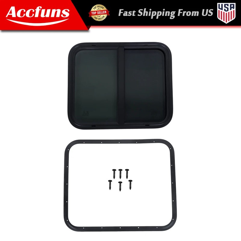 munirater For 24" Width x 20" Height Trailer Horizontal Slider RV Window W/ Screen Black