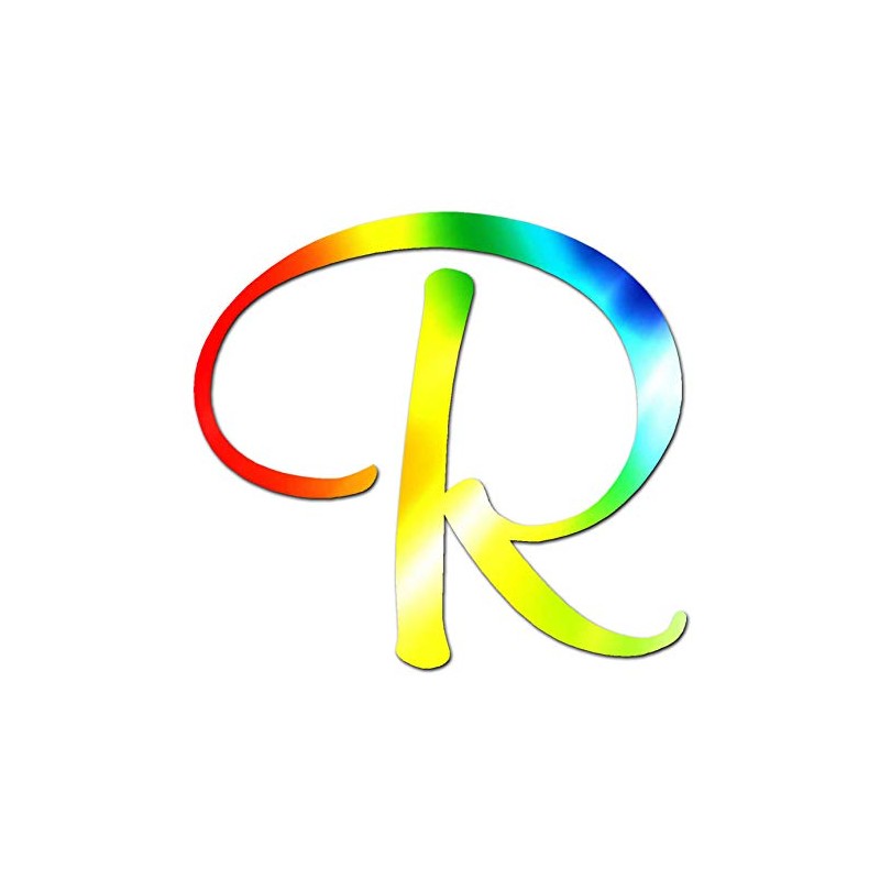 Mural Cursive Font R Initial - Vinyl Decal Sticker - 4" x 3.75" - Tie Dye