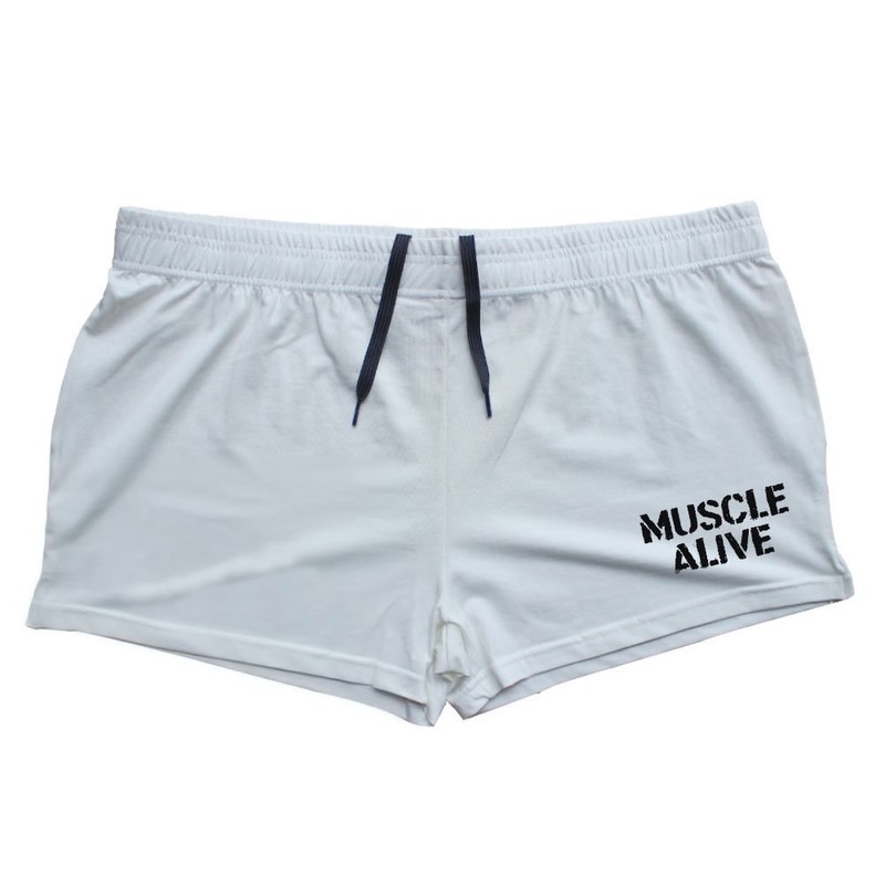 Muscle Alive Mens Bodybuilding Shorts 3" Inseam Cotton Size M White