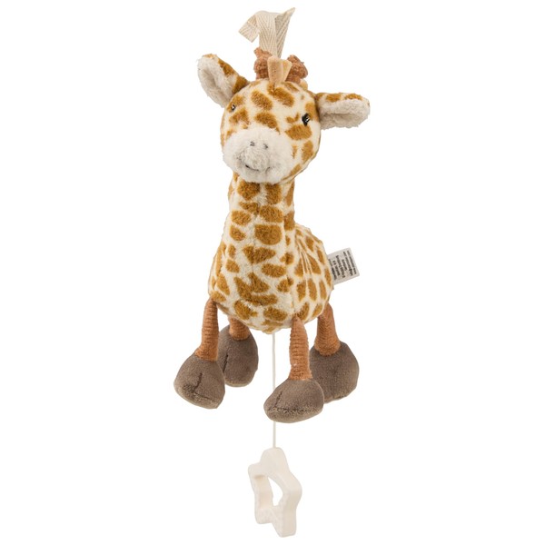- S Giraffe Kaya music box / // made of soft fabric /// for tying /// with floppy legs /// The attached zip makes removing the musical mechanism easy and the figure is easily washable /// Melody: Brahm's Wiegelsong /// Practical star handle