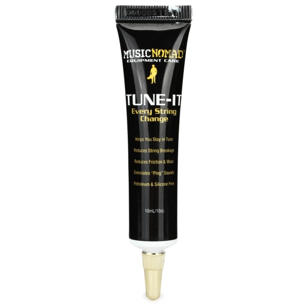 Help your guitar stay in tune better and reduce string breakage with MusicNomad's TUNE-IT Lubricant. Apply it to your nut slots, saddles, string guides, and even open-gear tuners. The specially-designed applicator makes it easy to apply to hard-to-reach areas. TUNE-IT Lubricant reduces friction while protecting against rust and corrosion. Guitarists at Sweetwater recommend using it every time you change strings to keep things working as smooth as possible. If you want maximum performance and reliability from your guitar, get MusicNomad's TUNE-IT Lubricant.