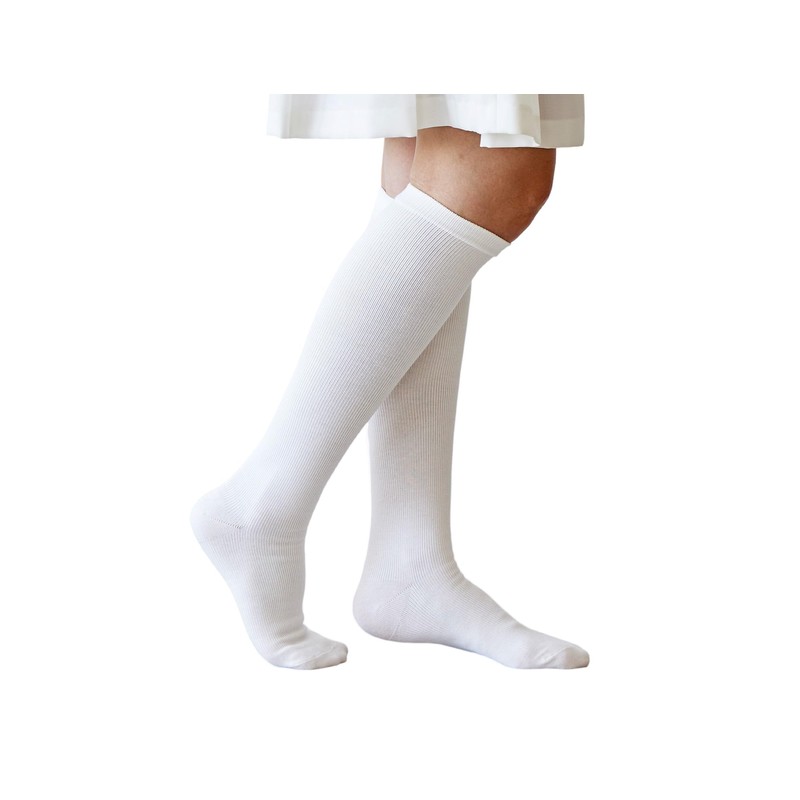 太陽ニットの着圧白。従来の着圧ソックスをリニューアルしました。着圧の強圧はそのままにより細かなリブ調にすることによりよりスタイリッシュになりました。足首からひざ下にかけての段階圧力設計を採用し、足首43hpa、ふくらはぎは32hpaの強圧に仕上げていますので脚もしっかりリフレッシュします。抗菌防臭加工の天然繊維の綿100%糸を使用していますのでお肌に優しく臭う心配もなし。つま先はゆったり設計で長時間の着用でも窮屈感がありません。看護師さんにピッタリの着圧ソックス白です。素材:綿、ナイロン