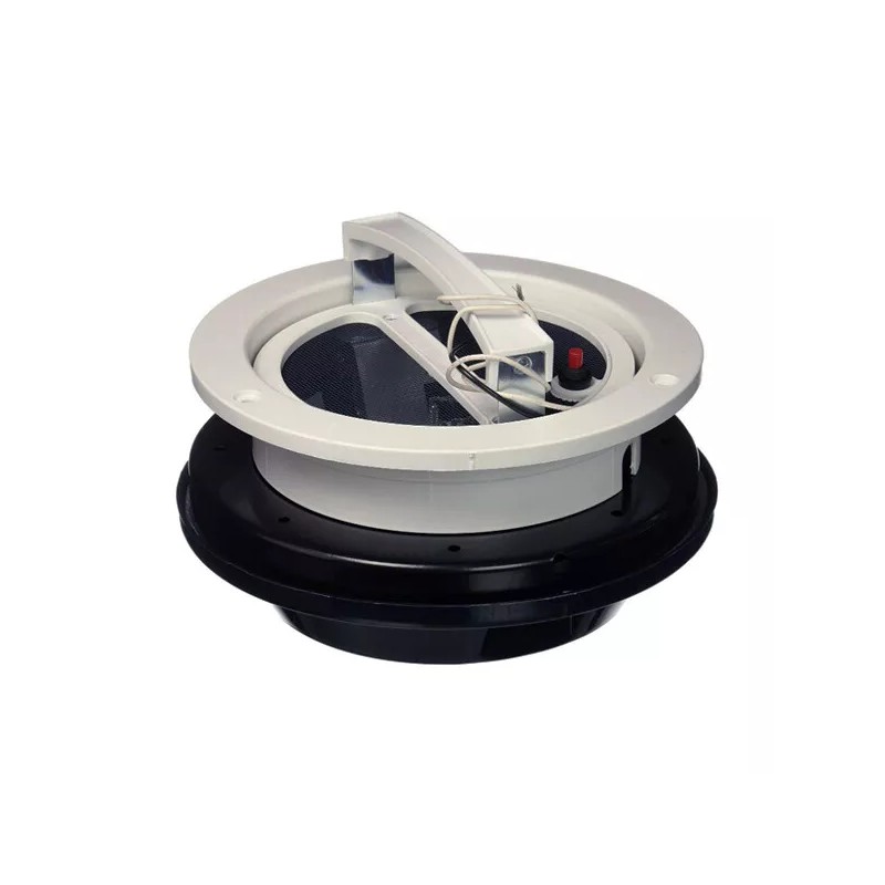 This roof vent uses a 12-volt fan to circulate air in motor homes and enclosed trailers, keeping interiors ventilated without compromising security. Rounded, plastic vent cover opens and closes with the simple spin of a handle.