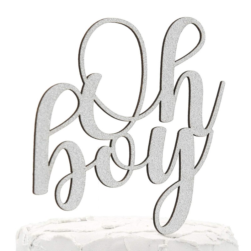 NANASUKO Baby Shower Cake Topper - Oh boy - Double Sided Silver Glitter - Premium Quality Made in USA
