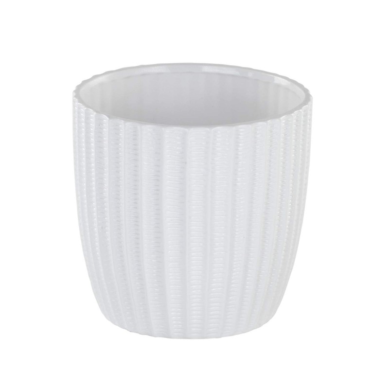 Napco 22113 Glazed Ceramic Ribbed Planter/Cache Pot, White