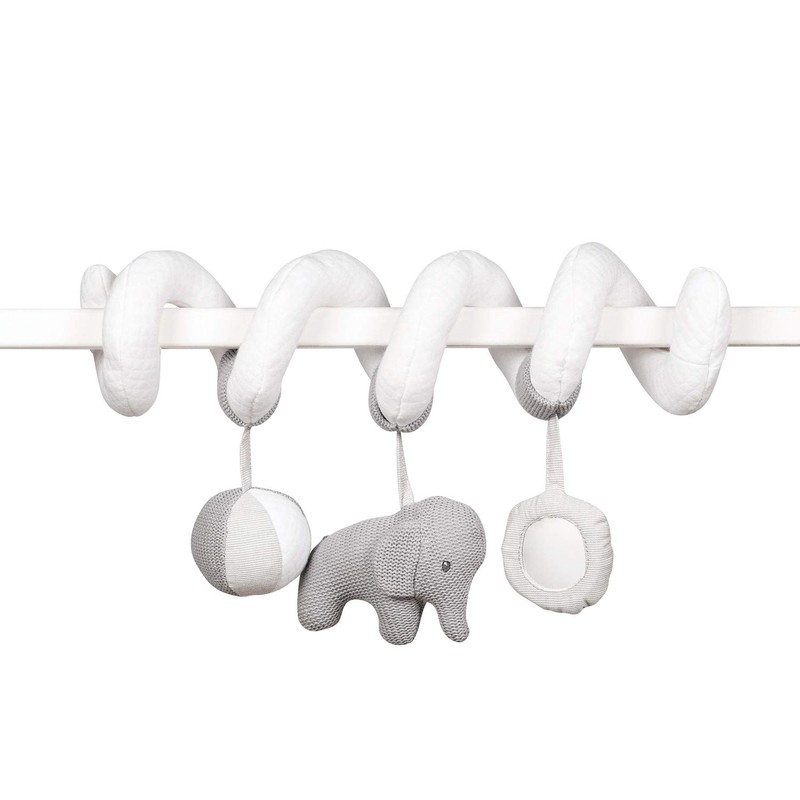 - Soft play spiral with small knitted elephant for playing and discovering, attaching to the cot, playpen or baby seat, great gift idea