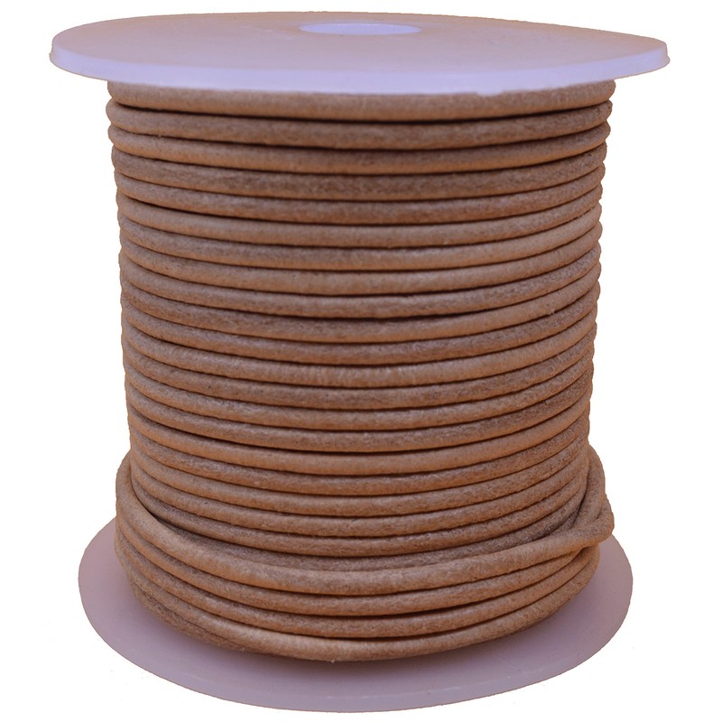 Natural Genuine Leather Round Cord - 2mm X 25m