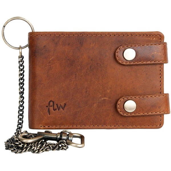 Natural Leather Biker's Pocket Sized Pure Leather Wallet with Metal Chain