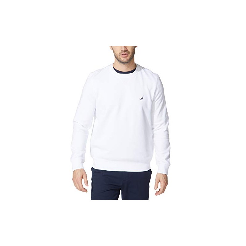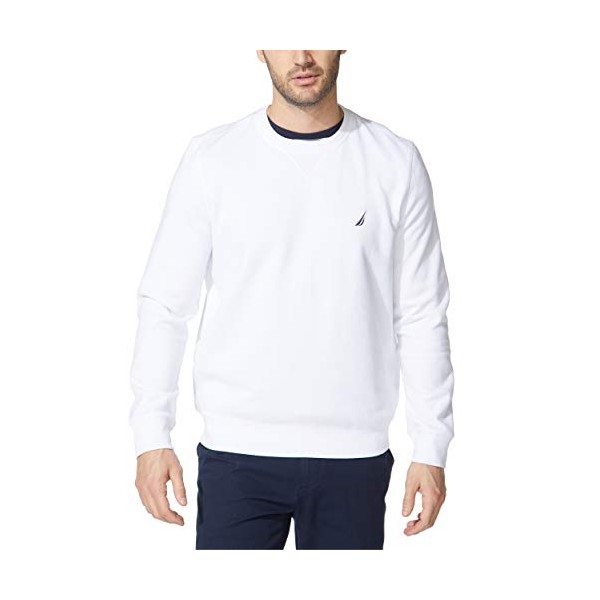 Nautica Men's Basic Crew Neck Fleece Sweatshirt, Bright White, Small