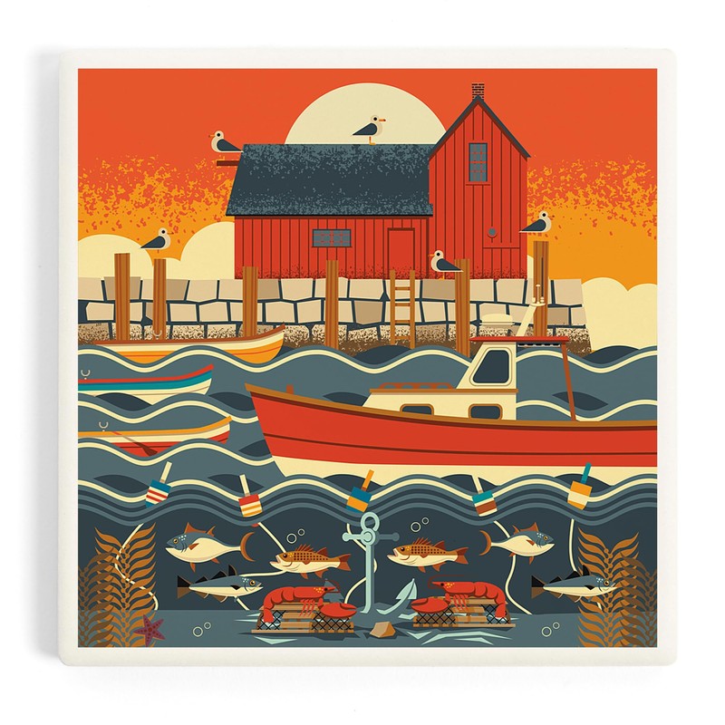 Nautical Geometric (Absorbent Ceramic Coaster, Single, Cork Back, Kitchen Table Decor)