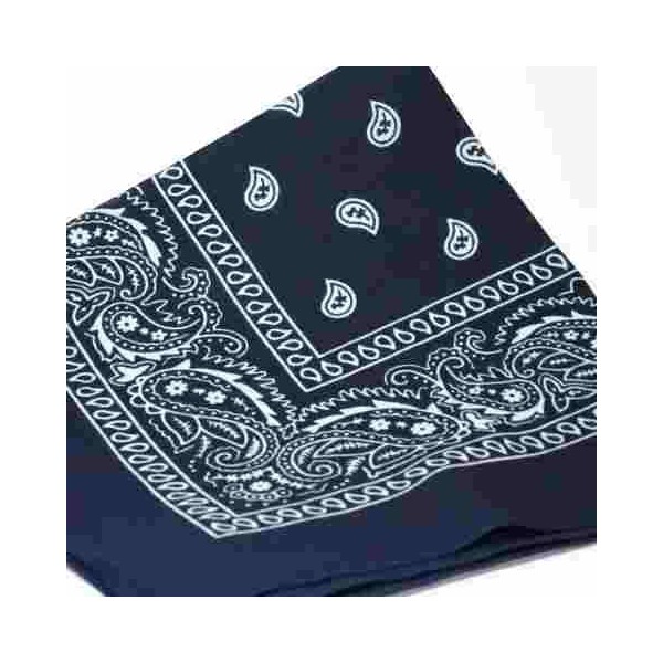 NAVY BLUE cotton bandana scarf SQUARE WHITE PAISLEY