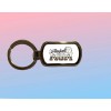 The keychain is silver in color with aluminum insert.