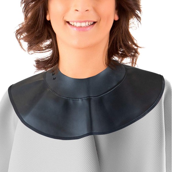 The Neocape range has solved an age old problem for you and your clients. All our styles incorporate a soft and supple neoprene collar creating a comfortable seal against the skin that stops hair and liquids from going down the neck. Our collars look, feel and perform differently: The unique collar with its attractive smooth Neoprene provides a comfortable seal against the skin stopping hair and liquids from going down the neck. With flexible faux leather linked to the collar, it sits comfortably on the shoulders and as it is circular can be positioned easily. The six adjustment poppers combined with the flexible neoprene means the collars fit easily and comfortably around even large necks.