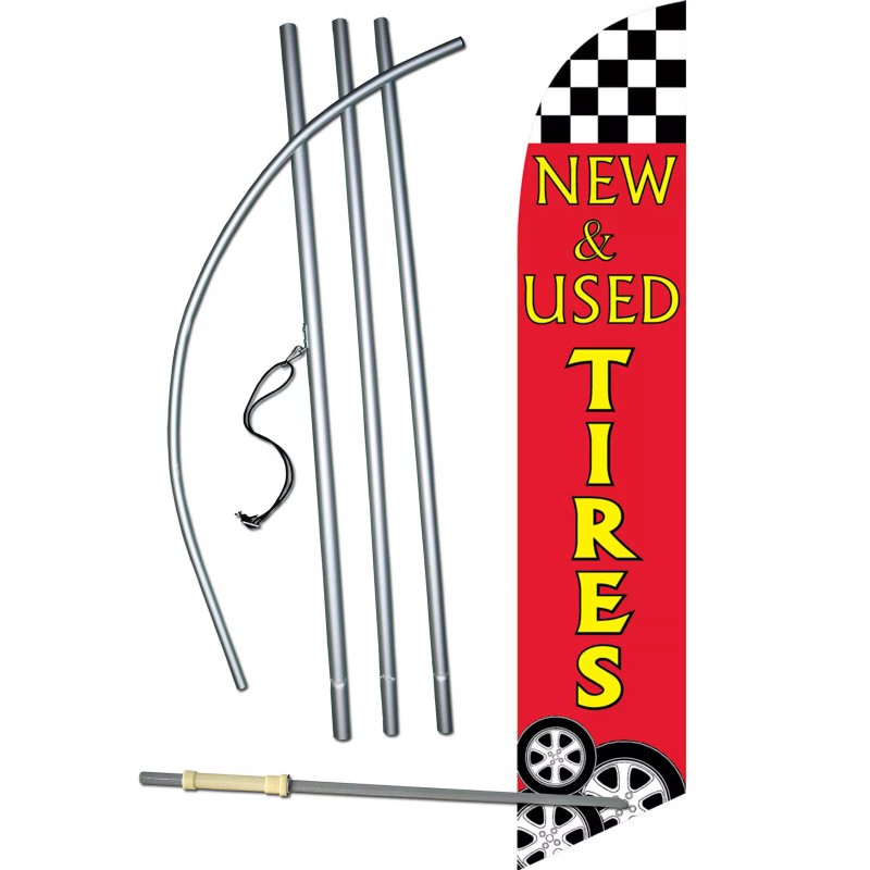 NeoPlex New & Used Tires Flag with Flag Pole and Spike