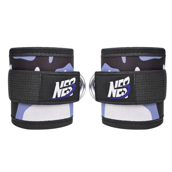 NES3 Foot Strap Cable Pull 7mm Neoprene Support 10" x 4" Ankle Strap (Camo Blue)