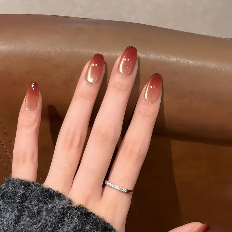 [NEURAD]ネイルチップ ミディアム 30枚入マグネットタイプ アッサムオムブレ付け爪 ~紅茶の深みを爪先に ネイル 人気 和風 かわいい
